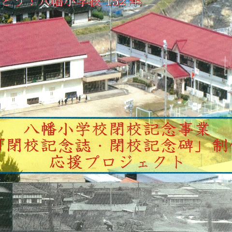 令和8年3月末を持って八幡小学校は152年の歴史に幕を閉じます。 私たち八幡小学校閉校記念事業実行委員会では、閉校記念誌と閉校記念碑を制作する予定です。閉校記念誌は八幡地区230戸全家庭に無償配付をしたい。さらに現在ふるさと八幡を離れ全国で活躍されている多くの八幡小卒業生の方々にも、希望されれば、この閉校記念誌をお届けしたい。